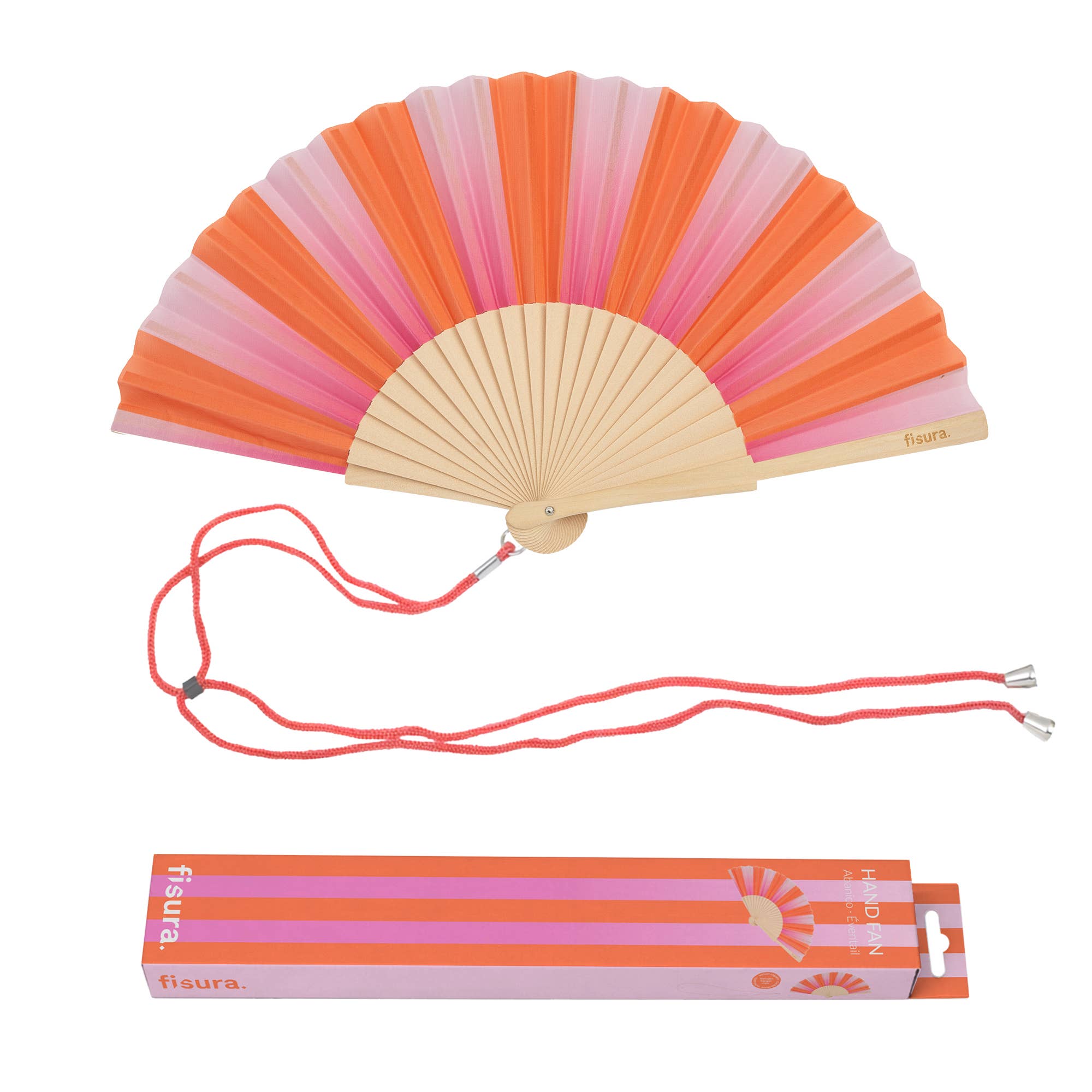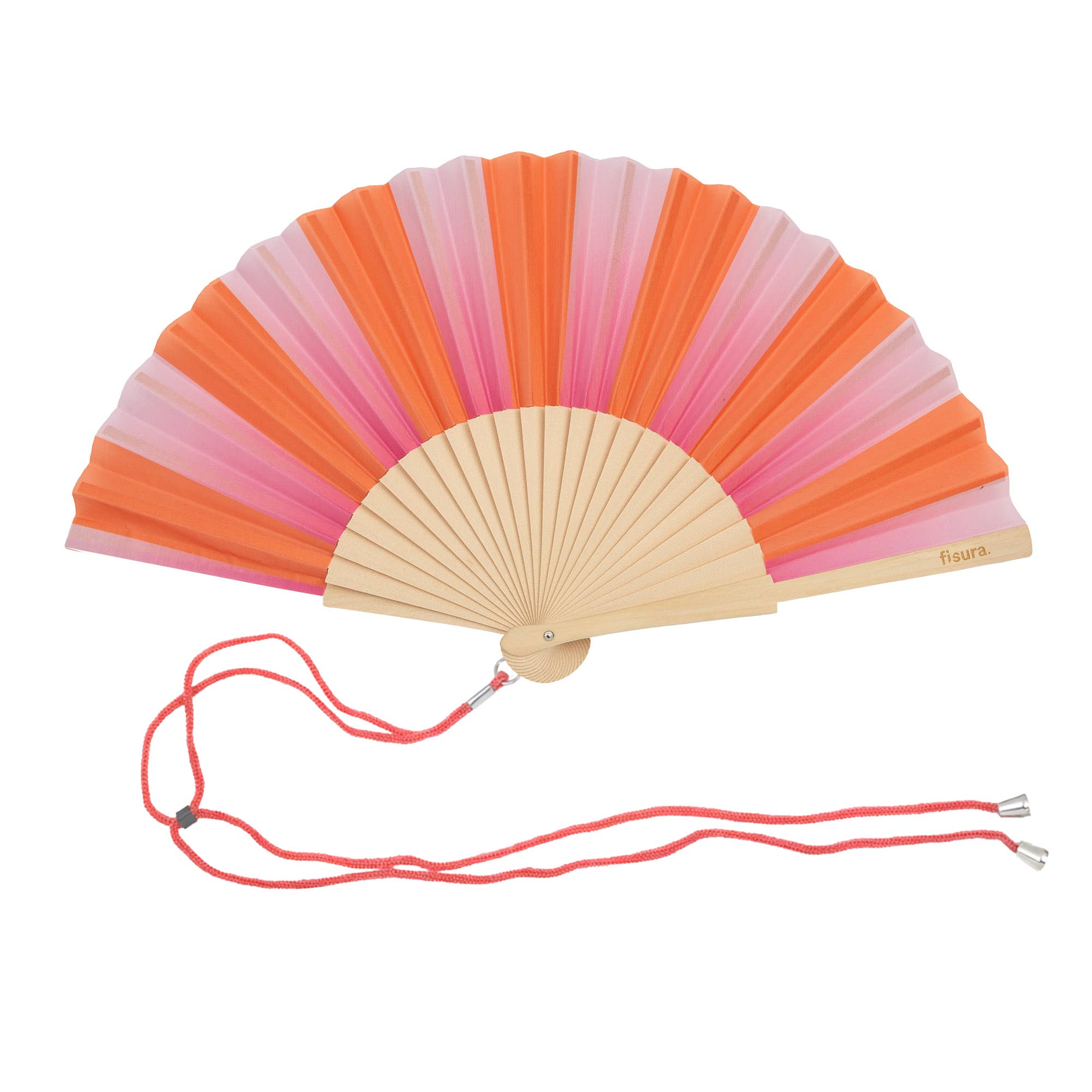 Wooden Fan | Pink and Orange Stripe