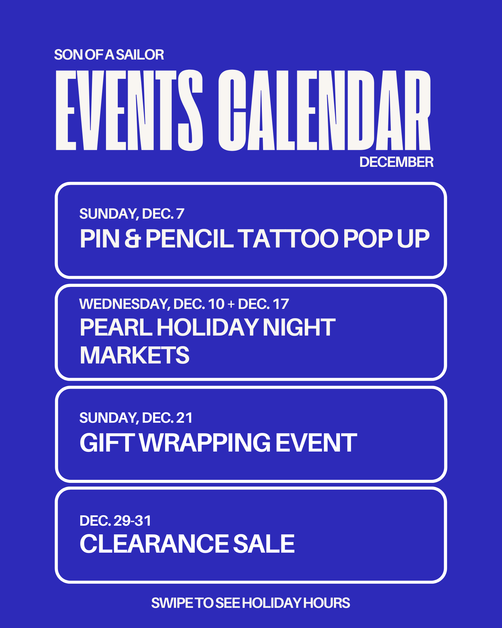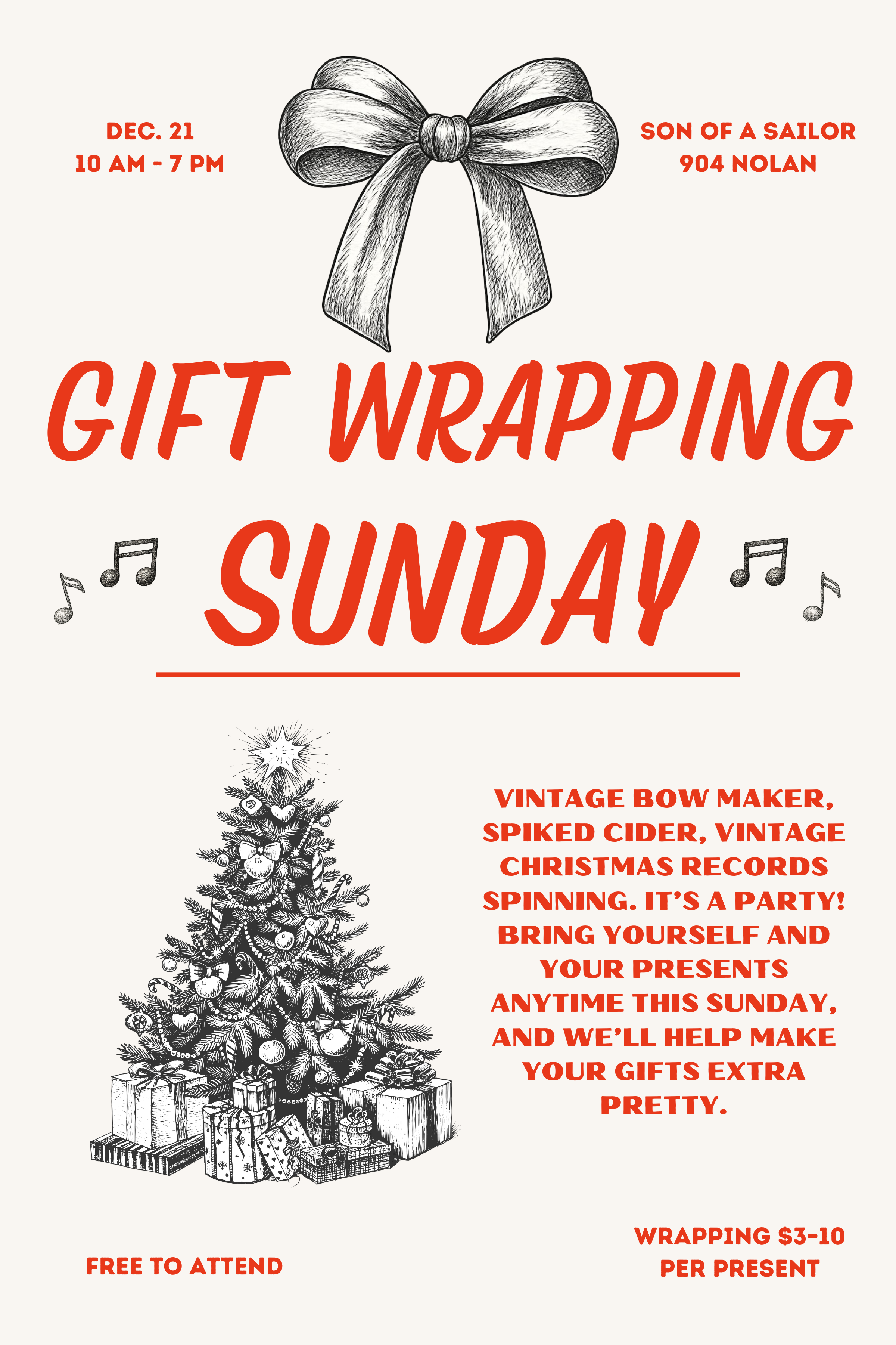 A drop-in daylong holiday wrapping event. Bring gifts from anywhere (or shop while you’re here!) and wrap them with curated papers, ribbons, bells, and handmade bows made on our vintage bow machine. Sip spiked cider in the afternoon while vintage Christmas records spin, or just stop by to hang and soak up the holiday vibes.