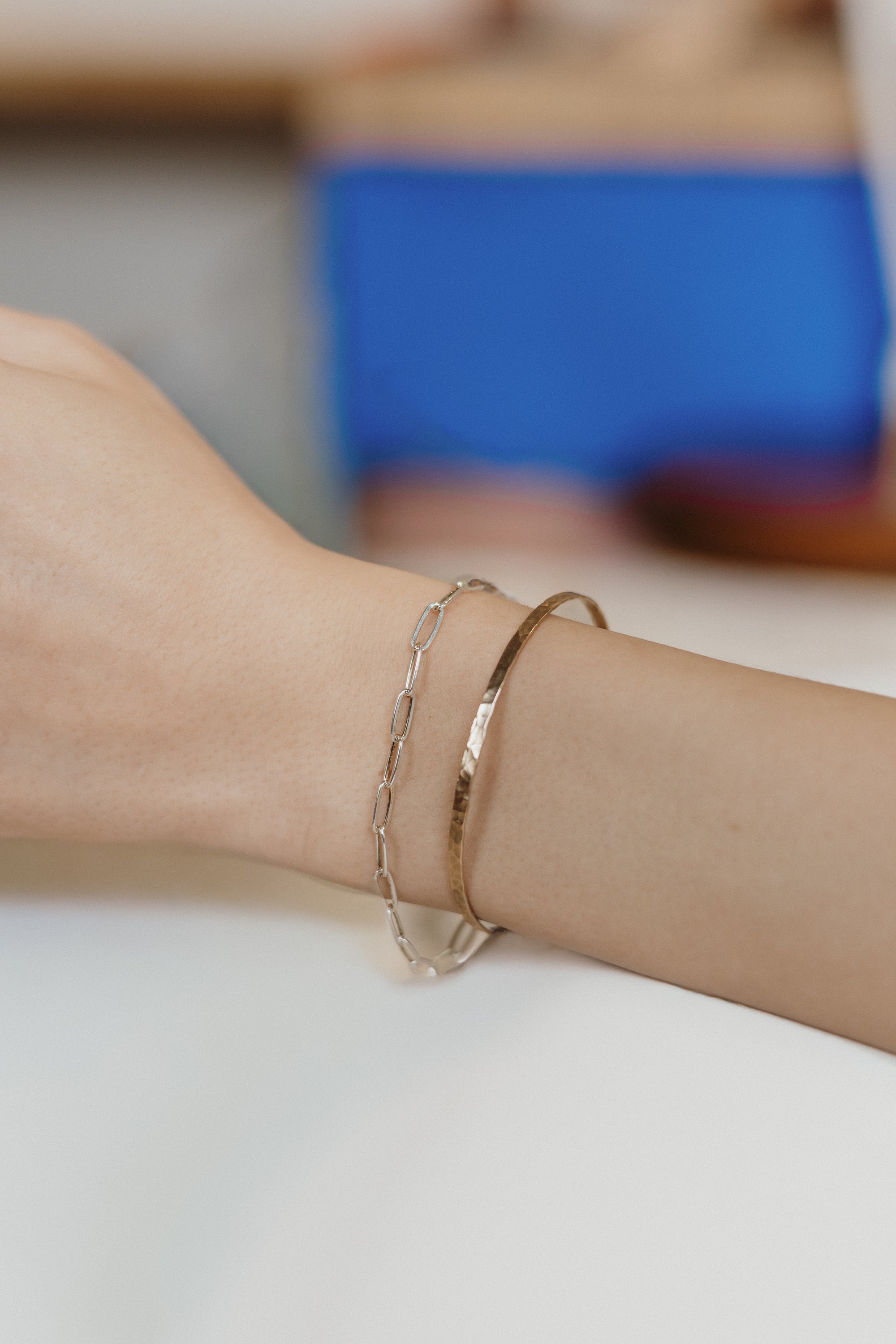 Choose from a curated selection of 14k gold-filled and sterling silver bangles, welded just like permanent jewelry chain. Bangles are the perfect compliment to chain jewelry, adding more form to your bracelet stack.