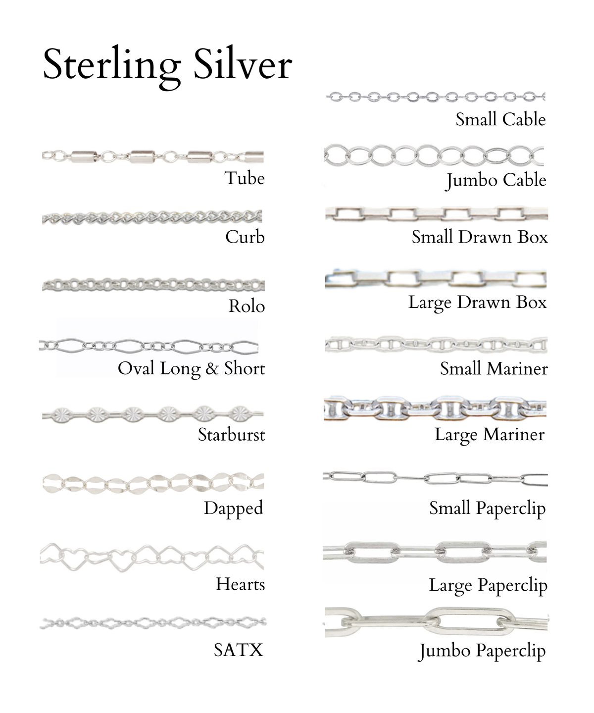 We offer sterling silver and 14k gold-filled chain for our Permanent Jewelry.